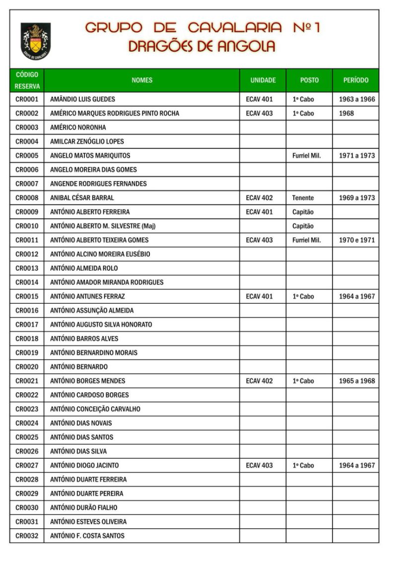Este é apenas um EXEMPLO da listagem de CÓDIGOS DE RESERVA e que resulta dos antigos DRAGÕES que estão registados na base de dados da organização. Obviamente que muitos há para registar. Se o teu nome não constar da listagem ou, constando, contém elementos por preencher, actualiza o teu registo.